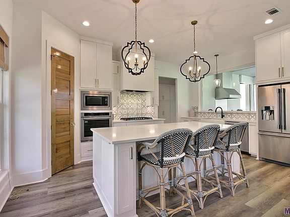 - Features: Cabinets Custom Built, Counters Solid Surface, Kitchen Island, Pantry