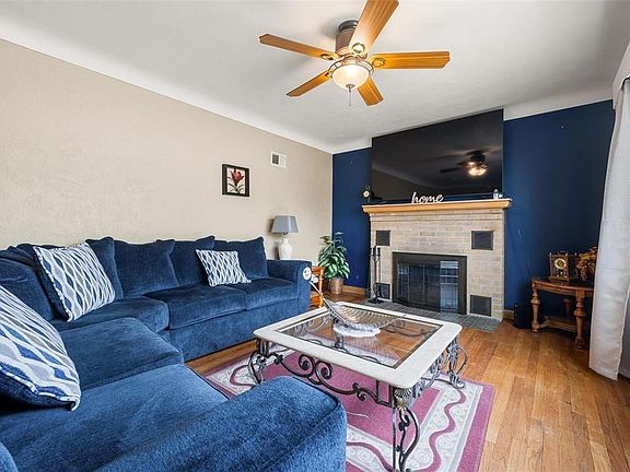 Classy, cozy home with energy efficiency at top of mind! Huddle up around the brick fireplace in the living room space, noting the coved ceilings and wood flooring that continues down the hall and into the bedrooms. In the kitchen, youll find updated appliances and ample counter top space. Tons of room upstairs, neutral paint colors and plenty of closets. Large open rec room area in basement, plus laundry room and workshop space. Great yard space with patio and detached 2 stall garage. Ready for those fall bonfire gatherings. Stop by and take a look! Ask about the high efficiency air source heat pump and Smart thermostat. No gas bill in this home.