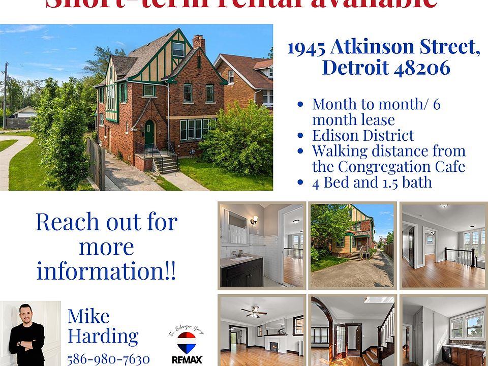 Welcome to this charming 4-bedroom, 1.5-bath brick Tudor located in Detroit's historic Edison District. Perfect for those in need of a short-term stay, this home offers classic character with modern updates and plenty of natural light.