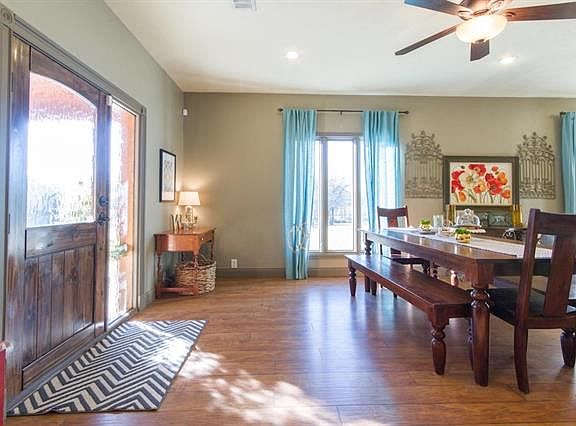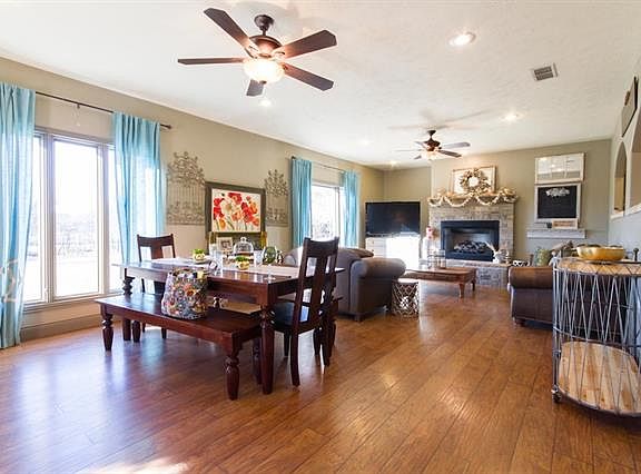 Lovely open concept w split bedrooms on 5 acres. Electric gate, pond, 33 by 40 workshop barn w 110&220, beautiful sunsets, covered patio w tree table & firepit. Unfinished mancave or guest house. Master w walk in closet & dressing area, furniture style sinks, garden tub & stunning shower. Office could be 4th bedroom. Remodeled kitchen w granite tops, stainless appliances & custom cabinets. Stone fireplace w gas logs. 2 stall carport. Very Nice!