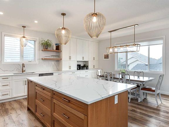 Five bedroom, 1400 sq ft high quality bungalow designed for a family. This home has an exceptional kitchen with beautiful high-end finishes, quartz counters and backsplash, large island, and an over-the-stove pot tap. The home is flooded with natural light and the dining room opens onto a private, covered upper deck. This level also has two bedrooms, including the spacious primary bedroom with a 5-piece ensuite and walk-in closet. Also on the main floor are the living room with cozy gas fireplace, 4-piece bathroom and a laundry room with built in cabinets. In the fully finished walk-out are 3 more bedrooms, 3-piece bathroom, and a 22' x 17’ family room. The yard has a large patio, is fully fenced, private, low maintenance, and has alley access. There is an oversized 32’ x 24’ garage that is insulated, painted, and has excellent lighting. Extras in this home include in-floor heating, central air conditioning, high efficiency boiler, and a water softener. Please click the multimedia tab for an interactive virtual 3D tour and floor plans.