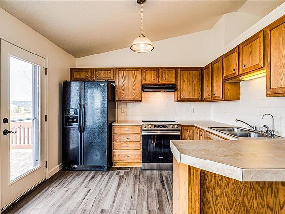asteful décor with light, carefree colors and is located on a cul-de-sacwithin the desirable Spring Hill Addition. As you walk into the home, you are greeted with a deep entry way and open staircase. TheLiving Room opens into the kitchen and dining area, creating a spacious atmosphere, all beneath a vaulted ceiling. It’s here you’ll find agas fireplace, complete with mantle and hearth, and a bay window for comfortable dining. The kitchen features laminate wood flooring,stainless steel appliances, an eating bar and plenty of cabinet space. With a split bedroom plan, the sizable Master Suite includes alarge window overlooking the backyard, a walk-in closet, and a deep master bath with two sinks and plenty of counter space to spreadout. Family time in the basement couldn’t be better in the over-sized, combined family room and game room, complete with cannedlights and surround sound for those movie enthusiasts. There’s also two, good-sized bedrooms, one with a view out and the other with adaylight window, perfect for the kids. Finally, the brand new basement bath will take your breath away with an absolutely gorgeous, fully-tiled shower, glass shower door, tiled floor and airy colors. With no neighbors directly behind the home, enjoy some privacy on the deckor patio while everyone is entertained in the fully fenced back yard. This is a great opportunity in the Goddard area!
