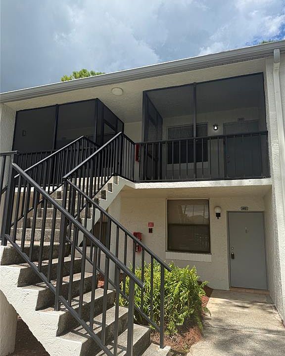 TOP FLOOR CONDO IN GATED COMMUNITY! As you enter, you'll be greeted by a private screened porch that leads to an open floor plan with a ceramic-tiled living and dining room. The kitchen is conveniently equipped with a pass-through, making entertaining a breeze. Both the living room and master bedroom boast a view of the gardens landscaping, complete with a tranquil trickling brook. This unit is the perfect oasis for relaxation and entertainment. Don't miss out! This condo association INCLUDES FLOOD INSURANCE and trash removal as part of their incredibly low HOA fee. On site recreation center with clubhouse, pool, spa, gym, gas grill, eating area, tennis court, pickle ball court and basketball court (with AC and league play). Feather Sound offers lots of green space with nature trails, playgrounds, park areas, soccer field and outdoor basketball courts. Take a leisurely stroll, a jog or a bike ride on the endless community sidewalks around the Feather Sound loop.