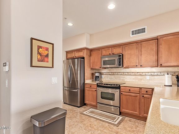 Very Special Former Builder Model in PRISTINE CONDITION right next to the fabulous Fireside Norterra Recreation Center! This meticulously maintained 2 bedroom/2 bath condominium home is 100% ready for its new owner. With a warm inviting color palette featuring tile flooring throughout, a nicely sized primary suite, dual-sink vanity, separate shower & roman-style soaking tub and a large walk-in closet this one is sure to please. The well-sized Kitchen offers solid surface countertops, custom backsplash, SS appliances and opens to the spacious family room. Enjoy those perfect Arizona nights/mornings on your own private covered patio or with a walk at the Sonoran Preserve steps from the front door. Either way, this must-see slice of heaven is the perfect full time or vacation getaway!