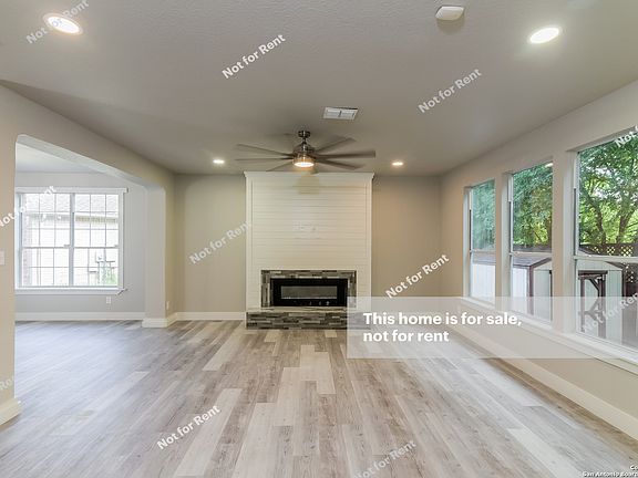 Welcome to this gorgeous Windcrest neighborhood! Terrific 4 bedroom and 2.5 bath home with a 2 car garage. You'll enjoy preparing meals in the gorgeous kitchen with sleek counters, stylish backsplash, mixed appliances, center island with breakfast bar and beautiful spacious cabinetry. Discover a bright interior with neutral hardwood floors and tile accents in all the right places. Entertaining is a breeze with this great floor plan complete with a cozy fireplace. The main bedroom boasts a private ensuite bathroom and walk-in closet. Other bedrooms offer ceiling fans and sizable closets. Entertain on the back deck perfect for barbecues. A must see!