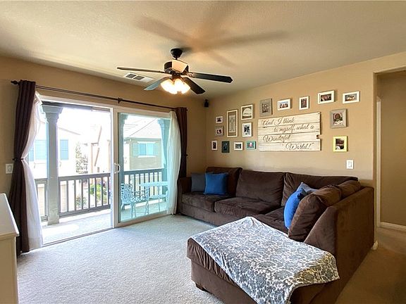 Charming Mariposa Townhome & wonderful opportunity for the first time homebuyer! Offering 2 bedrooms + 2 full bathrooms, 1,121 sq. feet, light & bright kitchen with white cabinets & plenty of counter space. Living room off of the kitchen, a separate dining area, and neutral colored designer paint gives a welcoming feel. Master Suite features double closets, dual vanity sinks with an enclosed tub/shower combo. The second bedroom is at the other side of the home with a nearby full bathroom. More features include ceiling fans, recessed lighting, living room slider that leads to a balcony with included shades, and wireless thermostat. There is a 1-car attached garage with direct access & 1 assigned parking space. Laundry hook ups in garage for a full size washer & dryer. Unit in great location of complex and offers several amenities including community pool/spa, clubhouse and playground. Low HOA & NO MELLO-ROOS! Don't wait, this home will sell FAST!!
