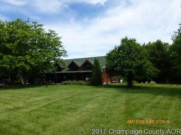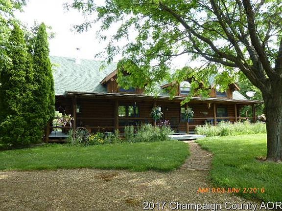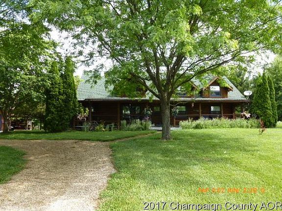 A dream home a must see this beautiful Northwoods Log Home, all round logs. This home sits on 5.59 acres backing up to Clinton Lake. There is a 12'x27' potting shed attached to the 24'x 36' garage, a 27'x4' above ground pool with beautiful wood deck, The covered porch is 6' wide on 3 sides of the home. A beautiful balcony is off the W. side of the loft area. This is a unique log home with 3 bedrooms, loft and a full basement. A 1906 refurbished wood burner accents the living room. All hardwood floors except for the kitchen area and bathrooms. The well is 186' deep and sits on the Mahomet Aquifer.