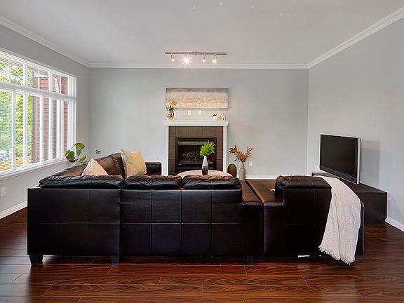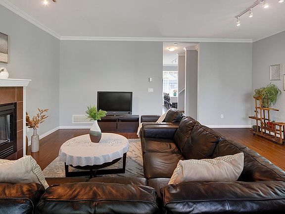 Welcome to Two Blue in Clayton! Bright corner end unit with 3 bedrooms, 2.5 baths, and double side-by-side garage. Windows on 3 sides fill the open layout with light, featuring granite island kitchen, stainless steel appliances, wraparound sundeck, 2 fireplaces, crown mouldings, and versatile rec room. Family-friendly location near schools, parks, shops, and walking distance to future SkyTrain. Willowbrook Mall is 5 min away, Costco/Home Depot/Superstore within 10, and Cloverdale Rec Centre 15 min. Updates: washer, dryer, microwave & range (2021), hot water tank (2022), furnace motor (2024). Move-in ready, pet-friendly. Open house on Nov 8th, Sat 11-1pm.