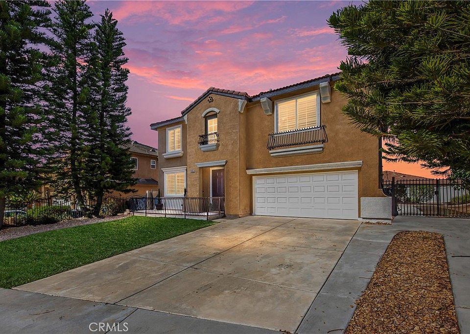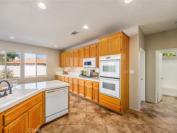 Two story 4 bed, 3.5 bath home on a cul-de-sac in the popular neighborhood of Orangecrest in Riverside. Full guest bedroom and bathroom downstairs, in addition to the powder bath. Kitchen open to the family room with seating at the tile counter and double ovens. Formal dining room connected to the formal living room. Fireplace in the family room. Primary suite upstairs boasts a breathtaking view of the city, separate tub and walk-in shower and two sinks in the primary bath. Shared hall bath also has double sinks and a tub-in-shower. Large bonus room upstairs. Ceiling Fans throughout and Plantation Shutters on the front windows. Laminate flooring in family and living rooms. Tile floor in the kitchen and bathrooms. Carpet in all bedrooms and bonus room. Great curb appeal with new sod and inviting front porch. Alumawood covered patio and low maintenance landscaping in the backyard. Vinyl fencing and sprinkler system. 7 foot wide side yard allows for the possibility of boat or trailer parking. Finished two car attached garage. Quiet, family friendly neighborhood. Orange Terrace Park with fields, library, play equipment and community center close by. Plethora of shopping and dining options are a short drive away in all directions. No HOA and low taxes.