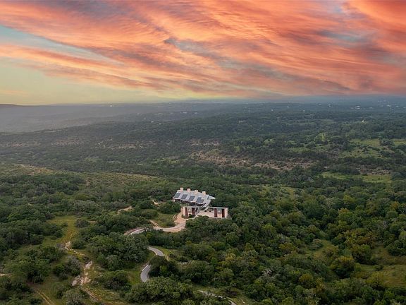 LUXURY PROPERTY AUCTION: 4–18 DECEMBER. Accepting Starting Bids Through 3 December. Starting Bids Expected Between $1M–$2.5M. Earn an incentive by 3 December. A once-in-a-lifetime opportunity awaits at Backbone Ridge Ranch, one of Wimberley's most iconic properties. This extraordinary nearly 50-acre estate harmoniously integrates luxury with nature, perched majestically atop a bluff overlooking the Texas Hill Country. The custom-built residence showcases a spectacular blend of limestone sourced directly from the estate's grounds, Ipe wood, and steel architecture that seamlessly embraces the landscape. Dramatic vistas, golden meadows, seasonal waterways, and breathtaking ridge lines create a private hillside paradise. The sustainable design incorporates 84 solar panels, 24,000-gallon rainwater storage, and tankless water systems aligned with LEED principles. Two separate three-car garages feature private apartments above, ideal for multi-generational living. Move-in ready and low maintenance, this versatile property delivers the complete package for discerning buyers seeking unparalleled scenic views, abundant wildlife, and nature on a grand scale.