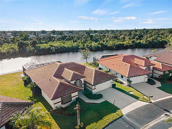 One or more photo(s) has been virtually staged. BEST VALUE in Cove Pointe Venice!!! Welcome to Cove Pointe! This oversize 2/2 with almost 1900 square feet is awaiting its new owner. NON Flood Zone! Experience stunning water views from nearly every room in this immaculate home! The screened entry features a charming Palladian window above the front door, leading into a spacious, open living area with soaring cathedral ceilings and a wall of sliders that open to the covered lanai. The expansive lakeside caged patio is ideal for entertaining. The efficient kitchen includes a cozy breakfast area with a bay window, while the master suite offers triple windows, lanai access, a large walk-in closet, and a bathroom with dual vanities and a stall shower. This split-floor plan provides privacy for the guest room, which also has a bay window and is located near a full bath. Additional features include a laundry room, newer A/C and water heater, and fresh paint throughout. Brand new roof installed in 2024. Nestled in the small, desirable enclave of Cove Pointe, this home is conveniently located near shopping, dining, medical facilities, golf courses, Jacaranda Library, and Woodmere Park. Don’t miss your chance to see this beautiful home—schedule your visit today!
