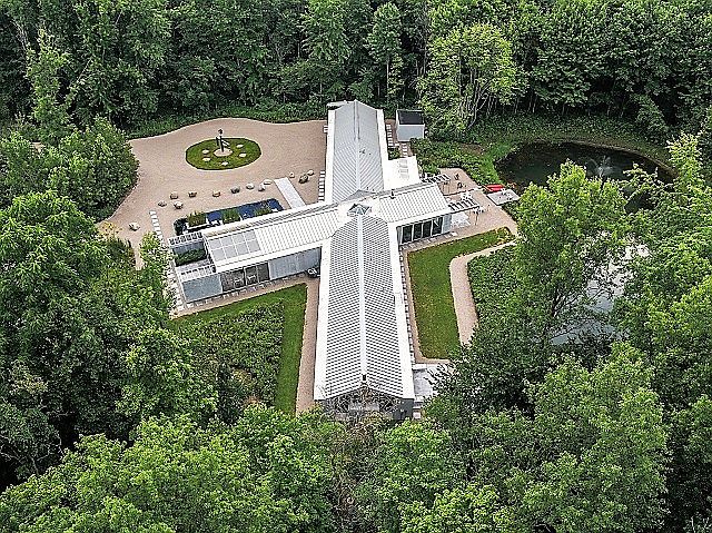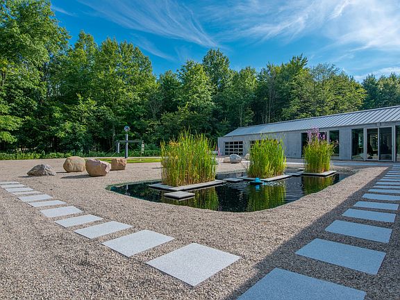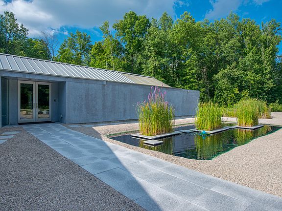 For Sale by Owner. OUR HOME IS CURRENTLY IN CONTRACT PENDING SALE. Thank you for the overwhelming interest in our home. This is an amazing opportunity to own a one story ultra-modern California Contemporary minimalist home designed and built by an architect for himself, nestled in almost 6 private acres of woods in Delaware County. The home is just minutes away from shopping, restaurants and entertainment. Very private yet close to everything you would need. The peaceful Serenity Pond with fountains welcomes you on your approach to the front entry glass double doors. The focal point of the home is a half-acre man made stocked fishing pond. The house plan has almost 5,200 square feet of living area. There is a central hall that runs the length of the entire house that all rooms are accessible from that is the unifying element of the plan. Living areas are completely open and filled with light from multiple skylights, insulated roof panels and floor to ceiling sliding glass doors and windows. All living areas have voluminous 13-foot-high vaulted ceilings and gable end trapezoid window walls. This is a great home to entertain family & friends in. You can easily and comfortably host gatherings for 50 to over 100 guests. The kitchen is the hub for guests to gather and enjoy friends and good conversation. The Great Room has a pyramid skylight that allows natural light to bathe the room with light and has an extraordinary view of the pond's spray fountain feature. The exterior of the house is durable natural gray stucco. The interior maintains the monochromatic minimalist design with neutral gray painted interiors as the backdrop for the owner/architect's extensive collection of large scale modern custom abstract art. The home's design is based on the concept of Bringing the Outside In and the Inside Out. The same light gray granite flooring is used throughout the interior and for all exterior patios and walks to consciously blur the lines between interior and exterior spaces thru the floor to ceiling glass. This home is easy to fall in love with & begin the journey of living your life in a home that exudes a sense of calm & peace. Home resides in Olentangy Schools District. - Custom exterior Serenity Pond with 2 fountain features and 3 planters - Custom glass walled waterfall pond in Foyer - Great Room with custom sculptural fireplace open on 3 sides with fire glass, Pyramid Skylight, custom 18 ft wide floor-to-ceiling LED Light Wall and leading to Large Granite Patio - Private Owners Suite with Private Granite Patio, Dramatic Glass Walled 8 ft wide fire glass fireplace, Two Walk-in Closets w/Elfa Closet Systems - Owners Bath with 10 ft floor-to-ceiling glass wall walk-in shower with multiple shower heads, Whirlpool Tub, Double Sinks and Custom Cabinets - Gourmet Kitchen w/custom cabinets, sparkling quartz counters & SS appliances including Refrigerator, Dishwasher, Double Ovens, Electric Cook Top, Microwave, Ice Maker, Beverage Cooler, Wet Bar, Large Island Breakfast Bar & Walk-in Pantry