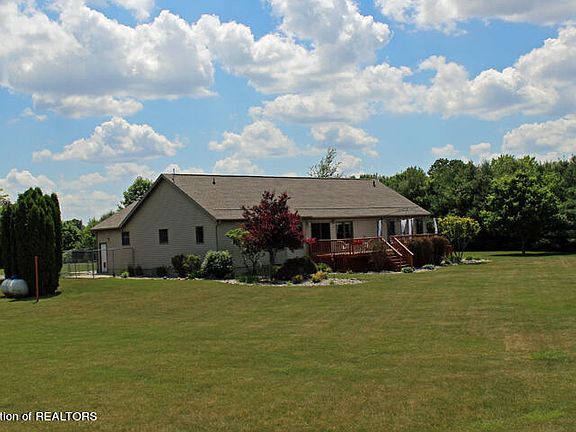 Living doesn't get much better than this beautiful Ranch set on nearly 5 private acres with views of open vistas. The living space is open with a fireplace and wooden vaulted ceilings giving it warmth and charm. Sliders here lead out to a large deck making a peaceful spot for mornings with that first cup of coffee. The dining area is connected to not only the living room area but the kitchen as well creating a warm atmosphere. The kitchen is large with lots of cabinets and counter space ready for big or small meals. Just off the kitchen is the laundry perfect for the busy housekeeper. The primary bedroom is large with it's own full bath and a French door to the deck for a cozy evening rendezvous.