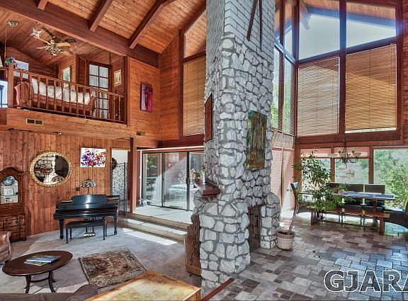 Sought after Redlands location! Nestled among the trees next to a pond on nearly 4 acres at the base of the Monument, hard to get much better than this! Nearly 4000 SF with 4 bedrooms, 4 baths & 3 car garage, this home is architecturally stunning! Chef's kitchen with wonderful butcher block counter tops & spacious island. This home was designed with style & flair. You will love the incredible great room with a dramatic floor to ceiling free standing stone fireplace & floor to ceiling windows throughout the east wall which frames the outdoor courtyard complete with large party deck, hot tub & outdoor grill center. Pavers lead from the courtyard/spa area to the in-ground salt water pool....just an incredible setting! Also included is wonderful garden area, planted & ready to go for the summer growing season. Monument trailheads 1/2 mile from home too! This is a one of a kind property!