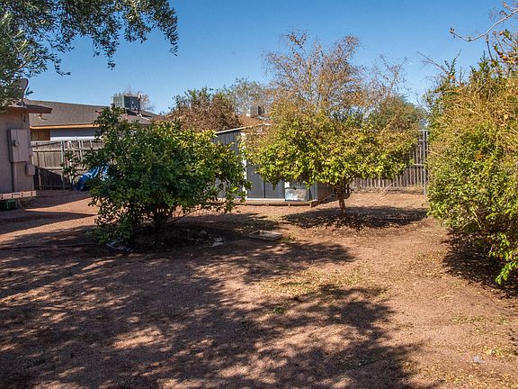 The property includes a 2 car covered carport, bonus room, new plumbing, A/C only 5 years old. Spacious back yard includes a patio area, storage shed, block fencing, and fruit trees.