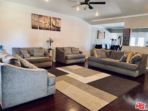 Gorgeous 4 bedroom (2 Master), 3 bath, completely renovated. Home has a large island in the center of the kitchen, with beautiful hardwood flooring running throughout the house. 1 car garage on the side of the home, and 2 car spaces in the driveway. Large backyard, mostly concrete. All grass in the front yard. The neighborhood is quiet and friendly. San Jose Creek is just a few blocks away. public record says 3 bedrooms, owner states 4. Buyer should do any and all inspections they desire to verify measurements. Please contact Ivette for showings or more information at 323.303.0631
