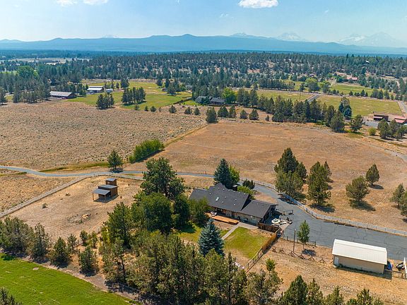 20-acre Tumalo retreat offering the privacy and tranquility of rural life. Ideally positioned down a long driveway behind a private gate is a home that artfully blends natural surroundings with rustic modern style. Inside, you'll find a vaulted foyer with gas fireplace merging with the great room and kitchen. A marble waterfall island, tile backsplash, and Stainless Steel appliances give a modern touch to the culinary space. The great room features hand-textured American clay and barn wood accent walls. The 864 sq ft attached studio with radiant concrete floor has a myriad of uses, currently configured as a guest suite with access to the third full bath. The exterior of the studio is wrapped in weathered steel siding. All 5 bedrooms are located on the main floor for single-level living. Outside, the large backyard features mature trees, a firepit, and large deck. The property is fully fenced with 3 acres of Tumalo irrigation, a pond, a horse stall, and a shop for toys and storage.