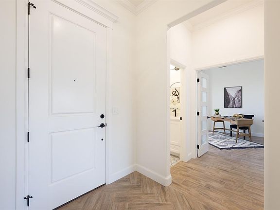 Enjoy the outdoors on the 17’ x 14’ covered back patio with fireplace, overlooking a backyard ready for a pool, workshop, or garden. Additional highlights include a three-car garage, an Amazon box hidden porch pocket, app-controlled garage doors, wider doors for accessibility, taller trim, ceiling fans throughout, and a front office/workspace.