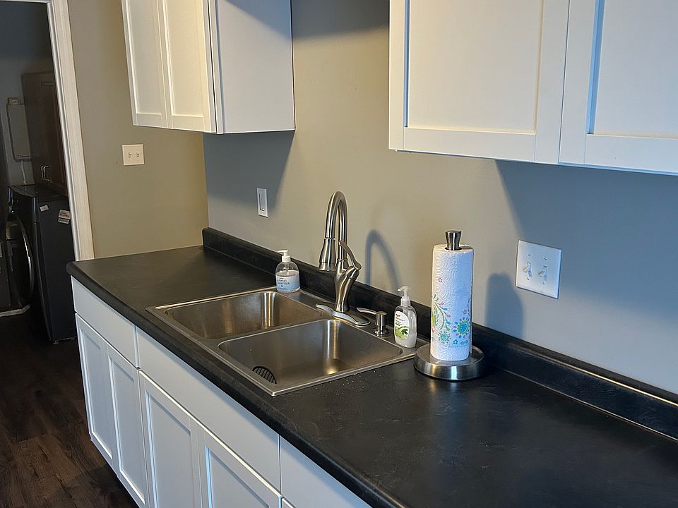 Vinyl sided ranchCircuit breakersFenced yard and patioWhite shaker style cabinetsGorgeous marble backsplashAppliances stay