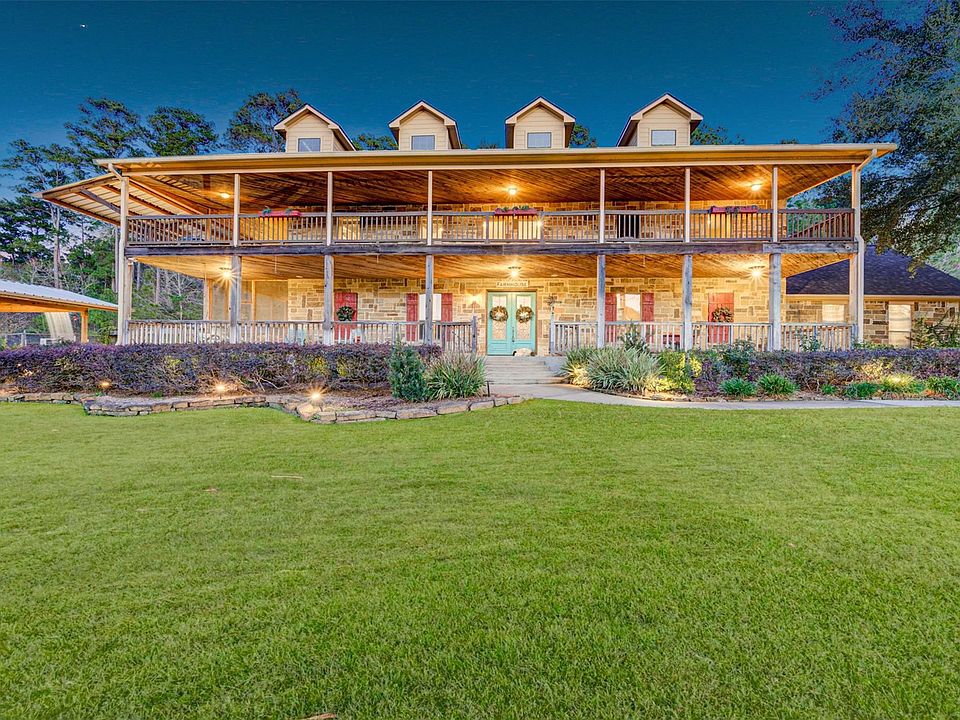 Motivated Seller! Enjoy solitude without fear of being built around while only 10 minutes from historic downtown Montgomery and 30 minutes from The Woodlands. Custom features inside & out with rustic, antique ambience. Home sits high on a hill overlooking 17+ fully fenced acres. A working hobby farm with pens & barns for all sorts of animals! Enjoy a riding arena and 6 stall horse barn complete with tack closet. Fully stocked pond with pier & deck, an orchard, a garden, an aviary, & tons of outside entertaining spaces. Main barn relocated from Pilgrims Pride Chicken Farms. Enjoy 3,164 sqft. of wrap-around porch space with stunning views. Sound system & landscape lighting throughout. Pool with waterfall, outdoor kitchen area, and 2 outdoor bathrooms. 30-zoned irrigation system, entire house generator, mosquito misting system, guest house pad, 3 wells, 2 barns, R/V hook up, and NEW ROOF in 2019!