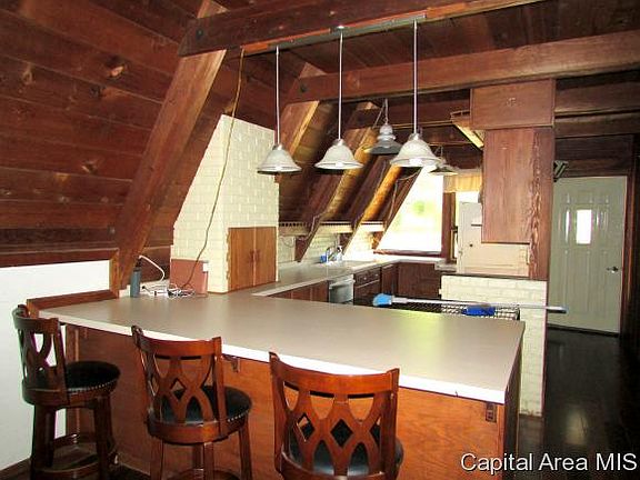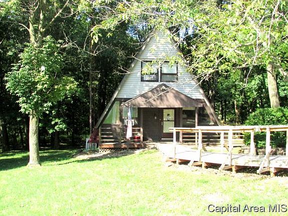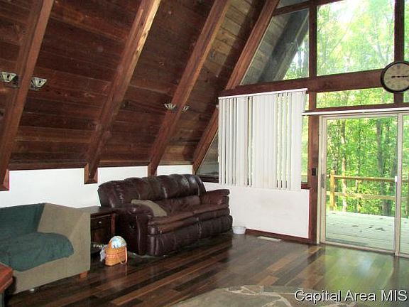 This beautiful A-frame home has an open feel with tall ceilings & huge windows overlooking a generous wooded lot on almost 3 acres! You will love the updates too! New roof & furnace in 2014, plus H2O heater & huge wrap around deck new this year. Kitchen features breakfast bar & is open to living & dining space as well. You'll also enjoy the partially finished walkout basement, beautiful woodwork throughout, loft master bedroom & charming spiral staircase. This incredibly private & serene setting in Petersburg is just minutes from Springfield & perfect for the lover of nature & peaceful living!