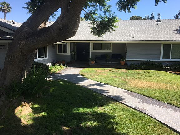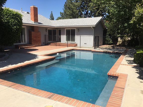 In a highly sought after neighborhood on a sweeping corner lot lies this beautiful 4 bedroom, 3 bath home. A winding brick path leads up to this 2,700 square foot home. The double door entry leads into the spacious foyer and gleaming hardwood floors. The large kitchen with a center island leaves plenty of room for the dining area. For a more formal atmosphere there is a large formal dining room with a wet bar, hardwood flooring and built-in cabinetry. The master bedroom ensuite has a ceiling fan, new carpet, plenty of closet space, direct access to the backyard and an updated full bath with a spa like feel. Vaulted ceilings in the living room add drama and a feeling of space with a stone fireplace as the focal point. Sliding glass doors lead out to the backyard. Two bedrooms have ceiling fans, new carpet and share an updated ¾ bath. The 4th bedroom has a ceiling fan and new carpet as well and is adjacent to a full bath. Out back you will find a sparkling pool and spa as well as a water feature. In the mood for fresh vegetables? There are 4 raised bed gardens. Radishes and carrots anyone? The 12,271 square foot lot offers up mature landscaping, sprinklers and a side yard that is wider than most. Additionally there is a "green" reflective roof, copper plumbing and central heat and air.