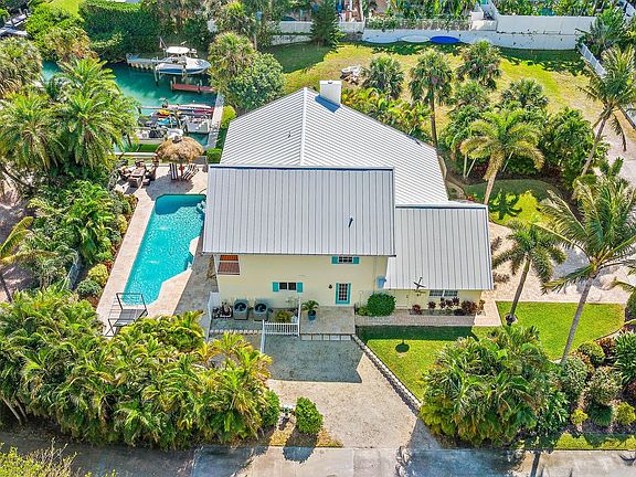 Discover the perfect combination of luxury and coastal charm in this meticulously upgraded Florida home on Harbor Road S. This residence boasts deeded boat slip with a 10,000 lb lift and private boat ramp access to the blue water of the Intracoastal and Ocean, creating an ideal retreat with no fixed bridges. Offering an oversized 3-bedroom, 3-bathroom layout, modern amenities such as impact windows, a spacious kitchen, and a pool with deck jets surrounded by travertine and lush landscaping add to the allure. Don't miss the chance to own this beautifully crafted home with a private boat slip and lift in a serene seaside community. From newer dual A/C systems to the paver brick driveway, each upgrade reflects a commitment to comfort and style, making this Jupiter home a unique and desirable haven for relaxation and entertaining. Other recent improvements include a new standing seam aluminum roof, impact garage doors, and a re-thatched tiki umbrella. With features like central vac, hickory wood flooring, ceramic tile, upstairs laundry, epoxy garage floor, and second driveway with access to additional boat/RV parking, Harbor Road S stands as a distinctive residence, promising direct water access and an exceptional lifestyle in the heart of Jupiter.