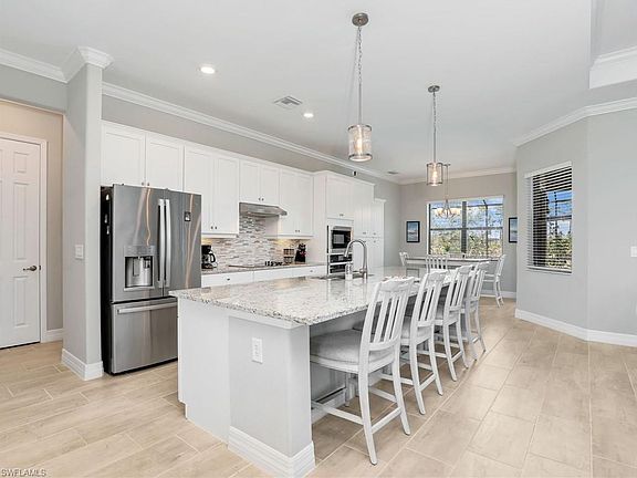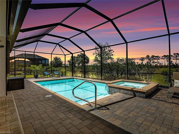 Located in highly desirable community, The Place at Corkscrew, this beautifully designed open concept pool residence offers 4 bedrooms and 2.5 bathrooms. The chef’s kitchen is a true centerpiece, boasting a spacious island, granite countertops, custom backsplash and a well-appointed pantry, making it ideal for both casual meals and grand entertaining. Thoughtfully designed with accent walls and stylish finishes, the main living area and primary bedroom exude warmth and sophistication. Step outside to your private oasis, where a screened-in lanai surrounds a sparkling pool and spa. The lush, landscaped surroundings provide a serene view, enhancing the home’s peaceful ambiance. Additional storage is found in the 3 car garage offering space for cars, toys and extras. Upgrades include accordion shutters on windows, automatic roll down shutters on the lanai and front door. The Place at Corkscrew offers resort-style amenities designed to elevate everyday living. The vibrant community features a lagoon-style pool with waterfalls, a water slide, and a splash pad, alongside multiple fire pits. Active residents will appreciate the well-equipped fitness center, movement studio, and a variety of sports courts, including tennis, pickleball, basketball, bocce, and volleyball. Families will love the kids' club, playground, and open recreational spaces, while pet owners can take advantage of the community dog park. Socializing is effortless with an on-site restaurant, bourbon bar, café/marketplace, and dedicated event spaces. With its prime location, upscale finishes, and an abundance of amenities, this residence offers more than just a place to live—it’s an unparalleled lifestyle experience. The Place at Corkscrew is located in the sought after Corkscrew Rd corridor and just minutes to shopping, restaurants, entertainment and RSW. Appraisal available upon request.