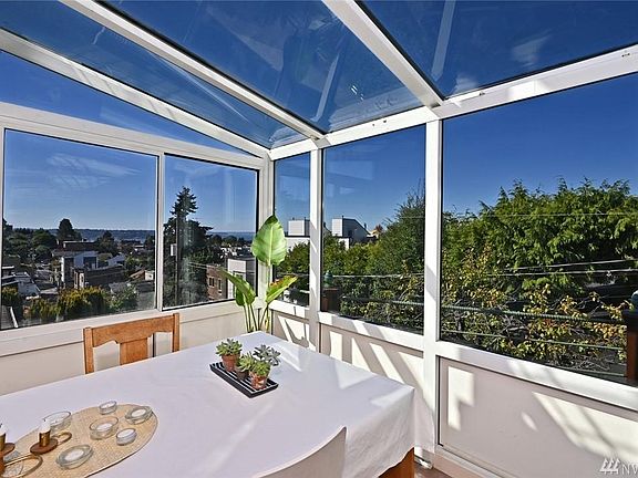 Spacious apartment with a view of the Olympic mountains and Puget Sound. Enjoy a warm and bright sunroom facing south and west, a private main-level balcony, and a private backyard to relax. This apartment is in the charming West Queen Anne neighborhood on a classic cobblestone street. A short walk from Upper Queen Anne, and quick 15th Ave access to downtown and Ballard, allowing you to enjoy everything the city has to offer. Main bedroom is large with plenty of room for a King bed. Main bath has a jacuzzi style shower. 2nd bedroom is loft-style and perfect for a home office, reading nook, or hobby room. Newly installed air conditioning will keep you cool during the summer months. Laundry is shared with one apartment. Queen Anne's tranquil charm and sweeping hilltop views provide a peaceful escape within the city. Cozy cafes, local bookstores, little free libraries, and craft breweries create a sense of community and vibrancy. Quiet yet full of character, this neighborhood is a great place to call home! Shared gigabit internet included in rent! Renter responsible for electric, water, gas. No smoking allowed. Additional pet fee of $40/mo for cats, $80/mo for dogs.