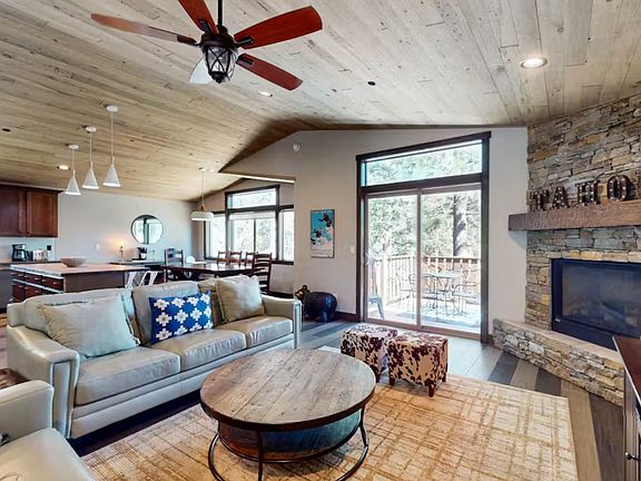 Situated in the Meyers neighborhood, this inviting 4BR/3BA almost new construction home offers the ultimate Lake Tahoe retreat. Kick back in two living rooms, relax on the balcony, or play games in the fenced yard -- all offering lovely mountain vistas.