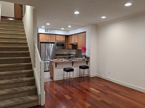 Available 2/15/2022, this beautiful 3 bedrooms 3 bathrooms townhome is within walking distance to Google and Costco with easy access to highway 101, 85 and 237! - Energy-efficient electric water heater and air conditioning system, with 1.5kw solar panel system for utility savings. - Upgraded hardwood floors throughout. Dual-glazed Milgard vinyl double pane windows with low-E glass. - Bosch stainless steel applications: Refrigerator washer dryer microwave oven and dishwasher. - High ceiling with lots of natural light. Recessed lights in living room and 2nd floor bedroom. - Luxurious master suites with compartment baths and separate shower. - Amazing balcony view quiet neighborhood and great community. Los Altos high school. - 2 cars attached garage, guest parking and lots of street parkings. - One year lease preferred, month to month negotiable. - Talent responsible for utilities. - No smoking please.