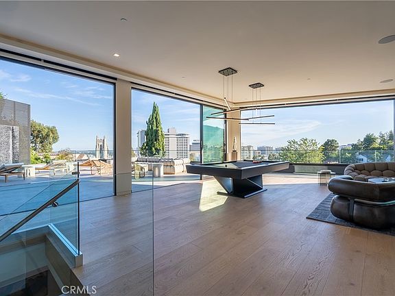 Welcome to this Modern Luxury Estate in the prime Hollywood Hills! With the best views of the city, this exceptional residence blends cutting-edge design with high-end finishes, offering the ultimate luxury living and entertainment. Spanning multiple levels, the home features 6 generously sized bedrooms and 7 bathrooms, each with en-suite configurations and custom walk-in closets. The entry-level boasts three guest suites, a state-of-the-art movie theater, and a full bar, creating a perfect setting for entertaining. The main living area showcases floor-to-ceiling sliding doors, seamlessly connecting indoor and outdoor spaces. The chef’s kitchen includes a large island, walk-in pantry, and premium appliances, opening to a resort-style deck complete with an infinity pool, rockwall waterfall, oversized hot tub, built-in BBQ, and wet bar, all overlooking stunning views of Hollywood. The top level is dedicated to the primary suite, featuring panoramic city views, a custom walk-in closet, and a luxurious bath with a soaking tub positioned to overlook Los Angeles. The primary suite has a private patio tucked away in the back with a private staircase to the pool. There's an additional en-suite bedroom, ideal for an office, also provides access to a private rooftop deck with unobstructed city views. On the lower level, you'll find another en-suite bedroom perfect for a gym or guest quarters. Additional highlights include a smart home system, full-service elevator, built-in surround sound, full security system, automated blinds, a 4 car garage, and a privately gated entrance. This one-of-a-kind estate offers a rare opportunity to own a truly unique and masterfully crafted property in one of Los Angeles’ most sought-after neighborhoods! Here's your chance to call it yours