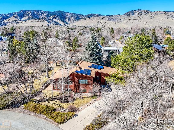 A unique opportunity! This custom home on over 0.4 lot in Boulder is ready for your personal touches. Designed, built & lovingly maintained by sellers, this residence is located on a small, quiet cul-de-sac & is surrounded by nature with its beautifully landscaped grounds. Multiple outdoor areas offer seasonal views of the Foothills, expansive yard, perennial gardens & plenty of space to enjoy Colorado outdoor living. An air-lock entry leads to an open floor plan with vaulted ceilings. Natural light fills every room to bring the outdoors in. Thoughtful kitchen easily flows to the dining rm. & spacious living rm.-perfect for entertaining & comfortable living. Beyond the kitchen is a very special area-a passive solar South-facing Trombe wall separates the main living areas from a glorious solarium with a wall of windows that extends the length of the home. This bright rm. features a brick floor, ventilation, a spigot to water plants, & under-the-stair storage for garden supplies. Just outside is a generous patio that steps up to a deck with built-in seating-plenty of space to entertain family/friends, grill, & relax. A separate garden storage rm. near raised beds is accessed from the back of the house. Five bedrooms, all conforming, allow flexibility to create sleeping areas-or an office or a place for crafting, gaming or music. The Primary suite features a mini-split in the sleeping area, radiant heat flooring in the bath, & large walk-in closet. Radiant floor heating is also located in the main level bedroom/office. A garden level basement has an enormous 24'x15' family/rec rm., 2 bedrooms, a full bath, & a storage area w/ shelving. The mechanical/storage rm. with newer boiler is large enough to create another bath. The oversized 2-car garage with opener includes an EV charging circuit. Namaste PV solar keeps utility bills low. Roof installed 2022. ADU may be possible. A peaceful location, yet close to shopping/restaurants/trails/bus. See Floor Plan in Docs.