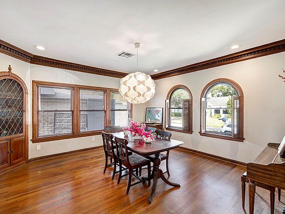 Step back in time as you enter this light filled vintage Tudor home through the solid wood arched door with original handset and lion’s head knocker. The home is surprisingly spacious with both formals, kitchen, utility room and two bedrooms on the first floor. The central hall has the old time built-in telephone shelf. On the second level is a primary suite, game room and additional bedroom. Much of the original charm has been preserved. Classic features include the stained wood trim Palladian windows, deep dental crown moulding, mock fireplace with mantel, built-in corner cabinet and high ceilings. A white and stainless Viking 6 burner with griddle range is the highlight of the kitchen. There is a large backyard with a spacious deck for enjoying the outdoors and satisfying green thumbs plus a two car garage with automatic door. Enjoy the eclectic furnishings and colors in a convenient close in location.
