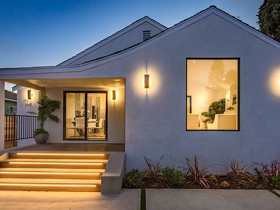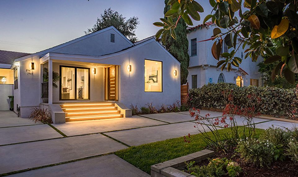 Back on market, buyer couldn't perform. Huge Price Reduction! Enter through private gates into this newly-rebuilt home with a warm and inviting Contemporary Transitional design in the desirable Crestview neighborhood. The light and bright main house features high ceilings with recessed lighting and skylights throughout, with wide-plank flooring and chef's kosher kitchen with modern stainless steel appliances and over-sized quartz island. Bonus den/office naturally flows into the large grassy yard and freshly-planted landscaping. This rare opportunity includes a fully built and permitted guest home which will sustain future value and allow for revenue generation if desired. Guest house is complete with an additional bedroom, bathroom, kitchen, laundry, parking and even has its own alley access. Main house has been rebuilt down to the studs with entirely new systems including new plumbing, roof, electrical, floors and HVAC.