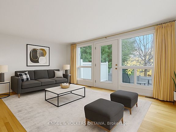 Pride of ownership is evident throughout this inviting home, ideally located close to shopping, transit, parks, and schools.The main level features hardwood flooring and an open, light-filled layout. The spacious living room boasts wall-to-wall windows that bathe the space in natural light and built-in cabinetry with glass doors that can easily be removed to suit your style. The dining room flows seamlessly from the living area and connects to a bright, updated kitchen offering abundant storage, generous counter space, and a convenient pass-through window-perfect for entertaining. Appliances include a fridge, stove, and dishwasher.Upstairs, you'll find sought-after hardwood flooring throughout, a very spacious primary bedroom with a custom closet organizer, and two additional bedrooms ideal for family, guests, or a home office.The lower level provides excellent versatility with a large recreation room featuring good ceiling height, a laundry area, and plenty of storage space.Step outside to enjoy a north-facing backyard with patio stones and direct access to open green space-no immediate neighbours behind-and a short walk to the community pool for summer enjoyment. The front yard also faces green space, creating a serene, park-like setting.This well-cared-for home offers excellent value in a convenient location with a strong sense of community. A true turnkey opportunity for those seeking comfort, space, and lifestyle in one of Ottawa's most connected areas.