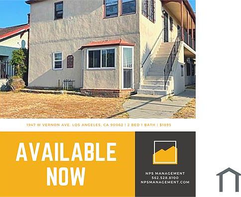 This is a 2 bedroom, 1.0 bathroom, townhome home. This home is located at 1947 W Vernon Ave, Los Angeles, CA 90062.