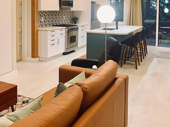 Executive Living in a Prime Location - All Utilities & WiFi Included!! Welcome to your fully furnished 800 SF home, completed in Fall 2023 and located in the highly desirable First-on-the-Hill neighborhood on Kemple Dr., just off SW Century Dr. Modern Comforts: Radiant floor heating, soaring white-pine ceilings, ceiling fans, air filter, and oversized operable windows w/ blackout shades. Living Room: Gas fireplace, 65" OLED TV, leather sofa bed, recliner with massage, pop-up coffee table, and large desk with storage. Chef's Kitchen: Spacious island with leather swivel stools, Corian countertops, sleek flat-panel cabinetry, Bosch gas range, ultra-quiet dishwasher, and fully stocked kitchenware. Bedroom Suite: Split-king adjustable bed with massage, double dresser, 52" TV, walk-in closet with built-ins, stacked washer/dryer, and luxury linens. Spa-Inspired Bathroom: Heated walk-in shower, bidet toilet, and vanity with Corian countertops. Outdoor Living: Back deck with firepit, BBQ, and lounge seating; front deck with Adirondack chairs and bistro set. Parking & Storage: Private garage bay plus additional off-street parking. EXTRAS: Keyless entry, Ring security system, motion-sensor lighting, and abundant storage throughout. High speed internet provided by TDS. Just bring your clothes and personal essentials everything else is ready for you in this beautifully designed, turnkey home! *photos do not depict added wall art and decor. Monthly rent includes all utilities and wifi. Available from mid-October, 2025 through May 30, 2026. Length of stay negotiable up to 7 months. Maximum 2 persons. No smoking or vaping inside unit. No cats but dogs are negotiable. Please inquire. Tenant responsible for any personal belongings.