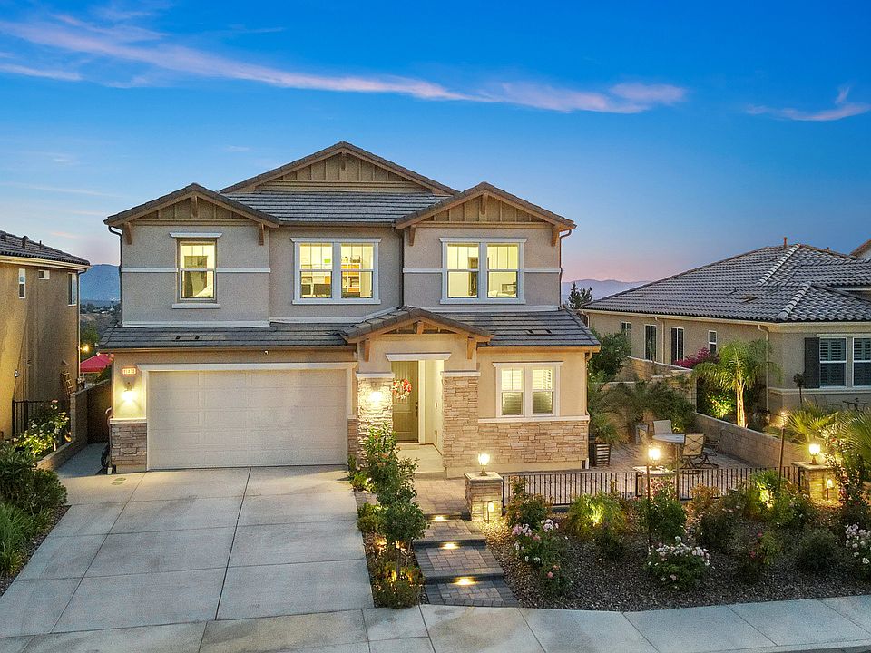 This beautiful home features 5 bedrooms/4 baths, with a bright open floor plan, located on a cul de sac, overlooking awesome VIEWS. As you enter into the spacious & open flowing floor plan into the formal dining, living area, kitchen with custom finishes, high-end appliances (microwave, dishwasher, range, Samsung fridge) , & breakfast bar/island. From the living area walk out onto your backyard with expansive views of all of the valley, built in grill, pergola with rotating louvers, built in fire pit, and fruit trees galore (lemon, lime, orange, pomegranates, avocado, persimmon, kumquat). A full bedroom and full bath downstairs for your guests. 2 stories. A loft, Master en-suite with a large bath inclusive of a spa tub and separate shower, large walk-in closet, designated laundry room, great natural light in bedrooms. Tesla power wall. Spectacular views from upstairs! Approx $200-$250k in upgrades! Newly built in 2019 (which means many warranties are still present) NO MELLA ROOS. LOW HOA. OWNED Solar powered- low to negative electric bills! Great Schools! Amenities! Community pool and park. Don't miss out on this gorgeous home!