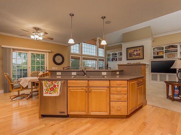 Ridiculously fantastic 5 bed ranch with 5,400 SQFT finished living space & overlooks 8th green at Pebble Creek Golf Course. Open floor plan with soaring 21âEUR(tm) ceiling over looking golf course. Master bed, kitchen and laundry room on the main level. The master suite includes a large walk-in closet, a master bath with a large walk-in shower, whirlpool tub, and dual vanities. 4 season porch attached to the mstr bed. Another plus is a large bonus room with a half bath above the garage which could easily be used as a bedroom or office. The lower level offers 10' ceilings and recreation room, & theater room with a 106âEUR screen for your viewing pleasure. 3+ car heated garage has enough room to park a fourth car or the extra space to keep your mower & lawn tools within easy reach. Added bonus the garage floor is epoxy coated with floor drains. Fully landscaped yard, front lighting & sprinkler system. Exceptional value for the price compared to similarly sized new construction. PV Schools.