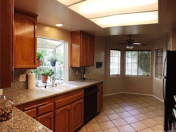 Wonderful opportunity to live the Porter ranch lifestyle in this 4 bedroom, 3 bath gated community garden home. There are warm colors thru out this 1746 square foot home. The beautiful kitchen has granite counters, elegant floor tiles and nicely appointed appliances. You can enjoy meals in either the breakfast area in the kitchen or in the adjacent formal dining area. There is also a garden window above the sink area. Living room has a nicely tiled fireplace. The rear covered patio offers privacy and the aroma of fruit trees and flowers in a used brick planter. For your security and convenience there is a side yard gate, front lighting and an intercom system. A huge plus is a full bedroom and bath downstairs. Upstairs there are 3 nice sized bedrooms with ceiling fans and ample closet space. The master retreat has a step up shower/tub combination and dual sinks with upgraded faucets and a walk-in closet. The upstairs hallway bath is full with nicely appointed tub enclosures. And you will have no excuse not to exercise with all of the association amenities available to you. Pools,sports courts, tennis courts and much more.