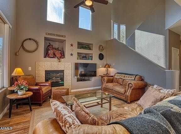 Welcome to your home away from home in the world-renowned Grayhawk golf course community. This tastefully decorated two-story townhome is within the gated community of Tesoro Grayhawk, with 1,666 square feet of luxurious Scottsdale living. It has 2 bedrooms + a den, 2.5 baths, and mountain views. You will enjoy all the comforts of home as it is fully equipped, plus an attached 2 car garage. Enjoy the resort-like amenities including access to a heated swimming pool, spa, and exercise facility.
