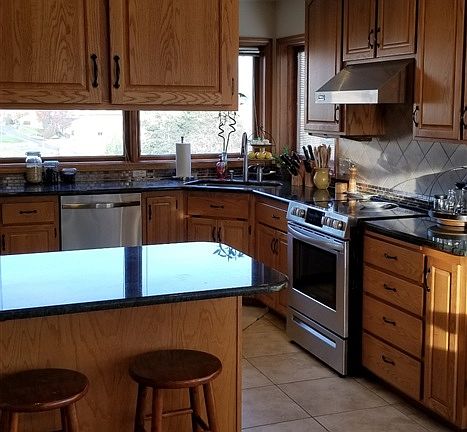 NEW PRICE!! Immaculate home features open design and large picture windows to enjoy the panoramic city and river views! Gourmet eat-in kitchen with granite counters, new stainless steel appliances and breakfast bar. Formal dining room with built-in hutch and tile floor. New flooring and paint in basement. Covered deck and covered patio. Centrally located on a quiet culdesac. Built-in storage throughout- including convenient storage room in the daylight basement. Large garage + off-street parking.