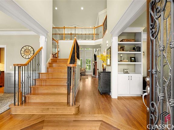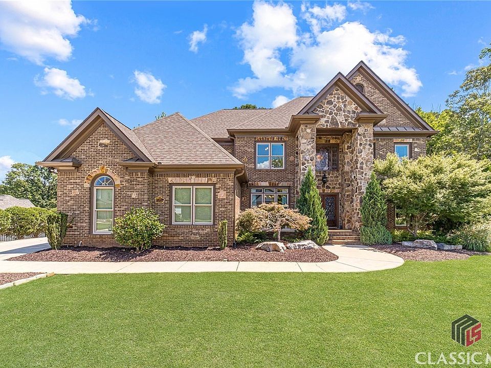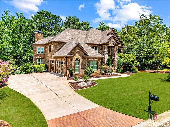 Welcome to this custom-built home in Traditions of Braselton. The grand entrance of the stone & wrought iron double doors is a perfect way to enter this four-sided brick home. The home is immaculately maintained and presented in a fresh neutral palette. Three-car side entry garage w/two smart garage door openers. 3/4 acre lot that is wooded and fenced provides amazing privacy. The backyard is the oasis you have been searching for with a huge deck and underneath it you find a flagstone patio that takes you to the paver patio with an outdoor fireplace and sitting area that is perfect for cool Georgia evenings. The windows in the home have been replaced with top-of-the-line Marvin Infinity with a lifetime guarantee. 6 bedrooms & 5.5 baths. The main level features a formal dining room, a formal living room with built-ins, and a wall of windows. The kitchen is a chef's dream with loads of cabinet space, a pantry, granite counters, stainless appliances, gas cooktop, wine rack, planning desk & a keeping room with another fireplace. There is a guest suite on the main plus a half bath for guests. Upstairs you will find the primary bedroom with a sitting room & the 3rd fireplace plus a spa-like bathroom with a large shower, jetted tub & huge double vanity. 3 additional bedrooms & 2 additional baths are upstairs. Large laundry room with cabinetry & laundry sink. The basement is finished for fun. There is a media room, recreation room, office, exercise space, bedroom & bath. The hardwood floors have just been refreshed & look like new. The interior was recently repainted. New carpet! Many designer touches in the home like Coffered ceilings, a brick focal wall in the basement, upgraded trim everywhere, and inlay details in the hardwood floors. Separate water meter for the irrigation system. The amenities in Traditions are world-class with tennis courts, beautiful clubhouse, pickleball courts, playground, and swimming pool in a Golf Course Community. There is so much home and property for the price and it will not last.