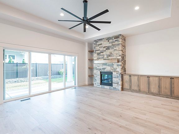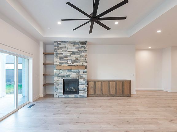 Don't miss out on the LAST new Eaglewood home in Lavender Heights: The spectacular single level The Juniper Plus! This home adds extra dining room space to our standard juniper plan with HUGE windows, double sliding glass door, and a breezy covered patio in the heart of south Meridian. Your gourmet kitchen includes a Bosch double in-wall oven and 36" gas cooktop, quartz countertops and custom cabinetry. The living room is impressive with full height stone fireplace with built-in cabinetry and shelves. This home features a stunning accent wall in your private master suite with luxurious master bathrom with a fully tiled, double-head shower. Enjoy a larger side yard with double gate to store a boat or trailer (under 6ft tall) Lavender Heights is an exquisite new community in Meridian across from Discovery Park. BTVAI. Home is complete - ALL PHOTOS ARE ACTUAL. Tour with your agent via lockbox or Self Tour with smartphone and ID.