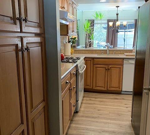 Move in condition. Newer flooring, newer heat and A/C. Newer kitchen cabinets and quartz counters, recessed lighting and a private patio