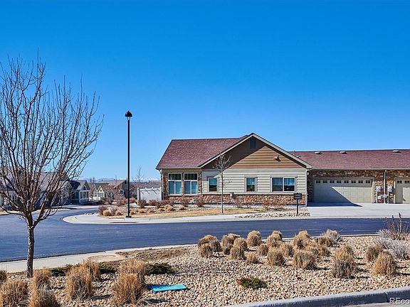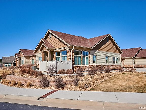 Make the discovery….Great Plains Lifestyle Community. The ultimate in carefree living. This spacious open concept two bedroom home is brimming with upgrades. An abundance of triple pane windows and custom shades flood the great room with natural light. The extensive use of hardwoods and the gas log fireplace add warmth to the main living space. The flex room off the main living area has endless possibilities. A spacious open kitchen boasts a large island/breakfast bar, beautiful slab granite counters, 5 burner gas range, 42” cabinets, French door refrigerator and microwave. Lower cabinet pull outs keep everything within easy reach. There’s a large pantry too. The primary suite features a lovely tray ceiling and adjoins a large bath with dual sinks, slab granite, tile floors and a large walk in closet. The secondary bedroom is adjacent to the full bath. The laundry room has a space for everything with a plethora of cabinets. ADA accessible doorways and zero steps. Situated just steps from the pool and club house. Near Great Plains Park, Central Recreation Center, Murphy Creek Golf Course, E-470 and Southlands Town Center. Don’t miss this impeccably maintained home. Special financing may be available with Seller’s preferred lender. Please contact Listing Agent for further details!