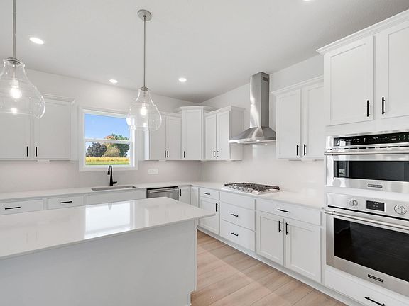 This home is available for a quick close! Ask about how to qualify for savings up to $5,000 with the use of the Seller's Preferred Lender! Welcome to Timber Creek, where the sophisticated Lewis floor plan delivers spacious, modern living in a prime location! This 4-bedroom, 2.5-bath home is just 2 minutes from Highway 212 and 14 minutes from I-494, with an elementary school within walking distance—ideal for busy households. The gourmet kitchen is a true centerpiece, featuring soft-close cabinetry, quartz countertops, a designer backsplash, stainless steel appliances, a walk-in pantry, and an oversized square island that’s perfect for both daily life and entertaining. The open-concept main level also includes a cozy Great Room with abundant natural light, a main-level flex room, a large mudroom, and extra storage. Upstairs, you’ll find four additional bedrooms, including a luxurious owner’s suite with a spa-inspired bath, a versatile loft, and a conveniently located laundry room. The unfinished basement offers room to grow, while the fully sodded yard, complete with irrigation and professional landscaping, adds the perfect finishing touch. This thoughtfully designed home offers comfort, function, and beauty—all in a peaceful yet connected community.