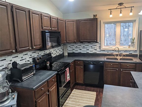 There is so much to appreciate in this custom built ranch on 8.5 wooded acres. Soaring cathedral ceilings add to the appeal of the open concept kitchen/dinning area. Beautifully finished basement/living area is awaiting your own personal touch. Large bedrooms with huge walk in closets await your needs. Magnificent master bathroom includes both a tub shower combo and tiled walk in shower. Huge garage with workshop offers ample room for your vehicles and projects alike, as well as outdoor water hook up and dedicated 30 amp plug in for your RV. Home is wired for a back up generator which allows for piece of mind. Walk out your front door and enjoy the recreational possibilities the pond and woods have to offer. Make memories with friends and family at your own private campground without ever having to leave the comfort of your home. One year old 10x14 detached shed provides extra space for all your storage needs. Stone pad already installed for your new barn or detached garage. This home wont last, schedule your tour before its gone!