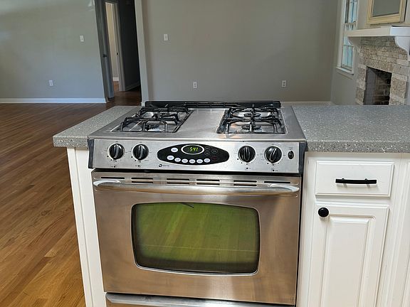 Gas fireplaceNew hoodGas stoveNew microwaveLarge fenced yardOak hardwood floorsOpen concept